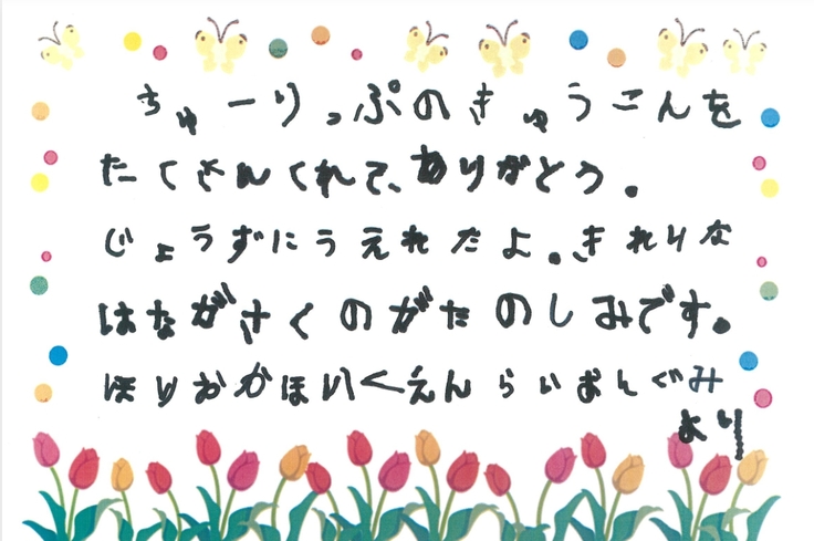 昨年のお渡ししたチューリップ栽培セットによりたくさんの笑顔や感謝をいただくことができました。