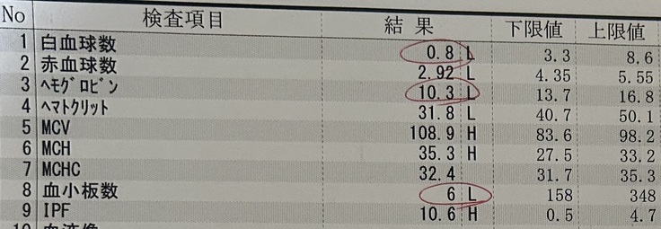 血は止まりましたが血小板の数値を見てみると、正常値が158〜に対して6しかなかったので、即輸血しました!