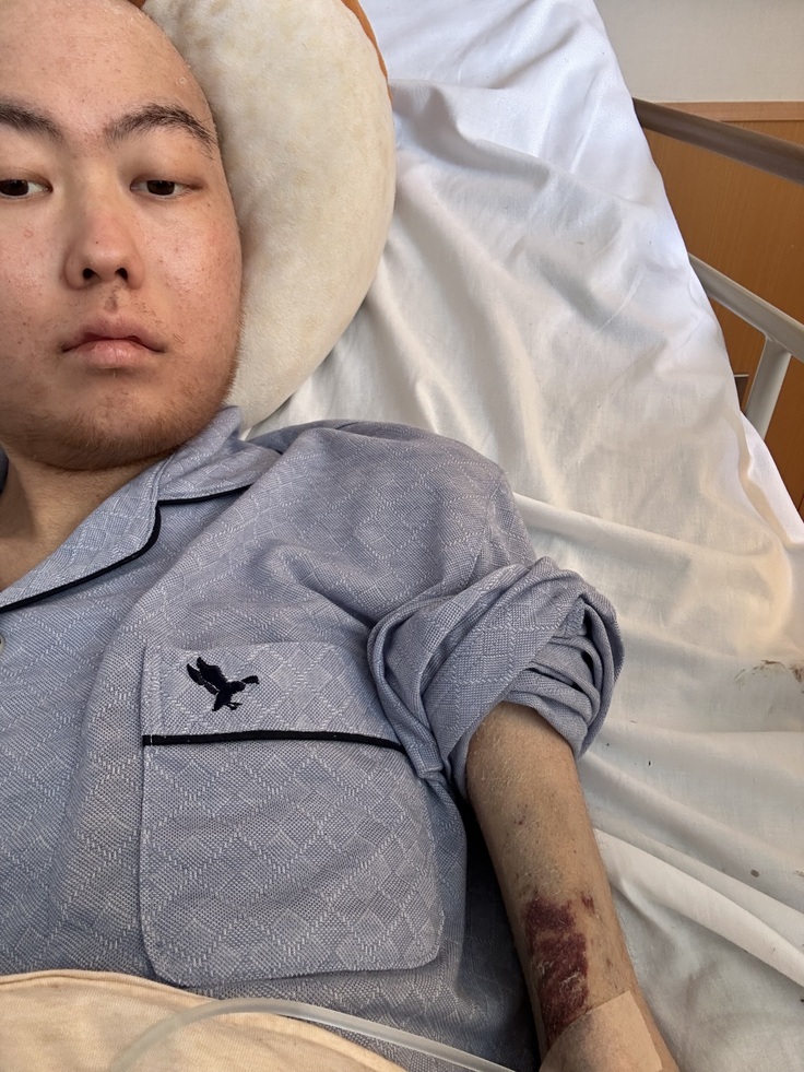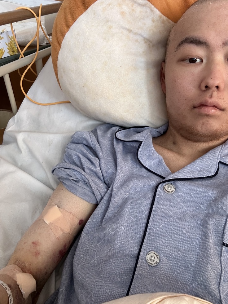 実は今日、点滴を入れるためのチューブを入れ替えました!それはまあいつもの事なんですが、どうやらそのチューブが血管に上手く入っていなかったようで、漏れ出した液で右腕がパンパンに!