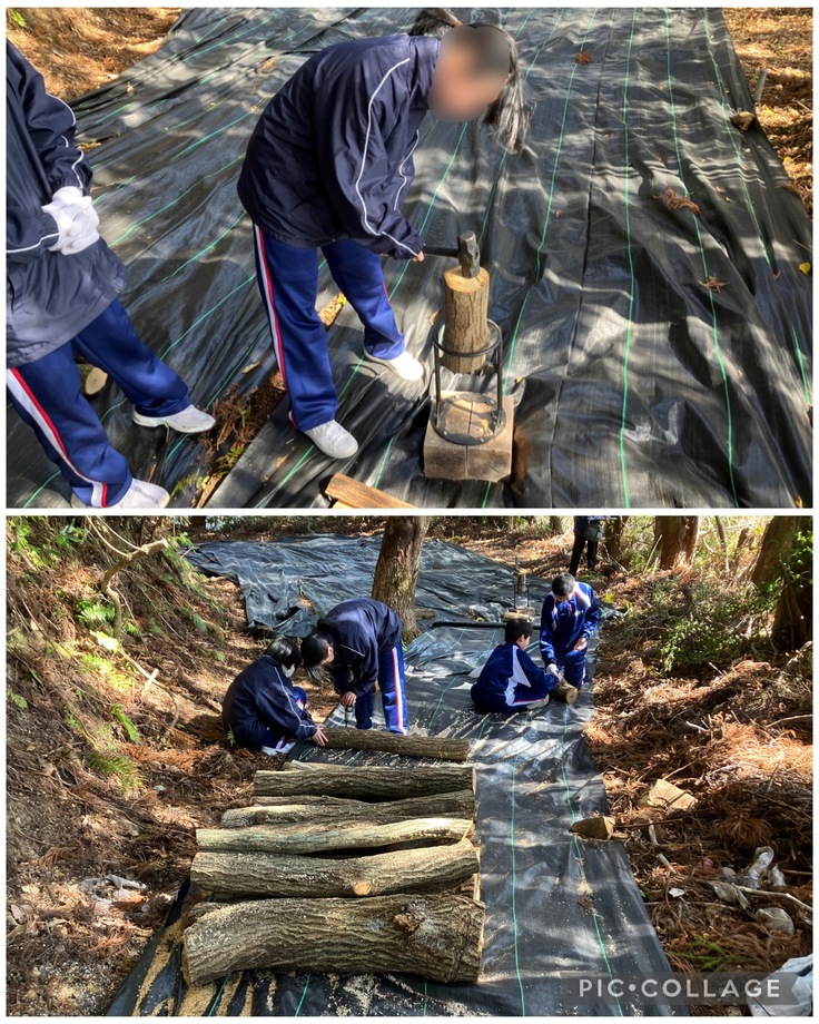 原木シイタケの駒打ちと薪割りの体験を行いました。