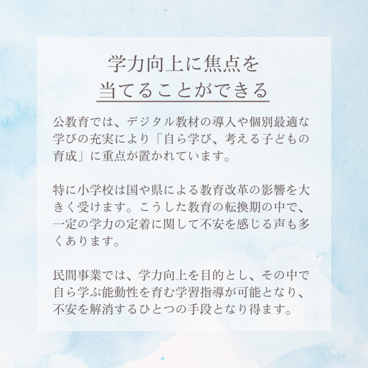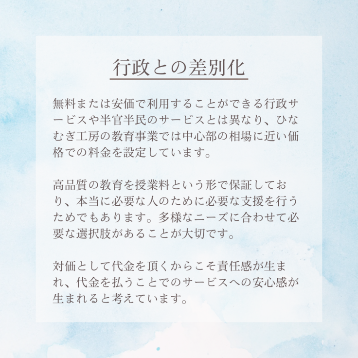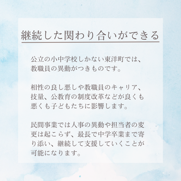 町内の教育事業や子ども預かりのサービスは現在行政または半官半民の形が主流です。