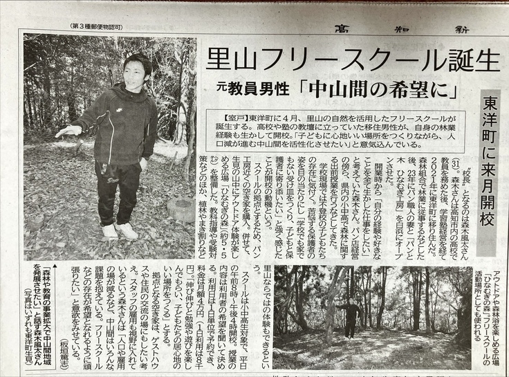 地元紙である高知新聞に、ひなむぎ工房のフリースクールの開校をピックアップしていただきました。