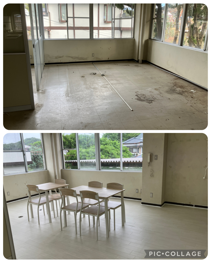 カフェスペースの古いエアコン及び室外機の撤去、キッチンの撤去、ゲストハウスへの誘導灯の設置、カフェ・ゲストハウスへの給湯設備の修繕・新設などがこの間に完了しました。