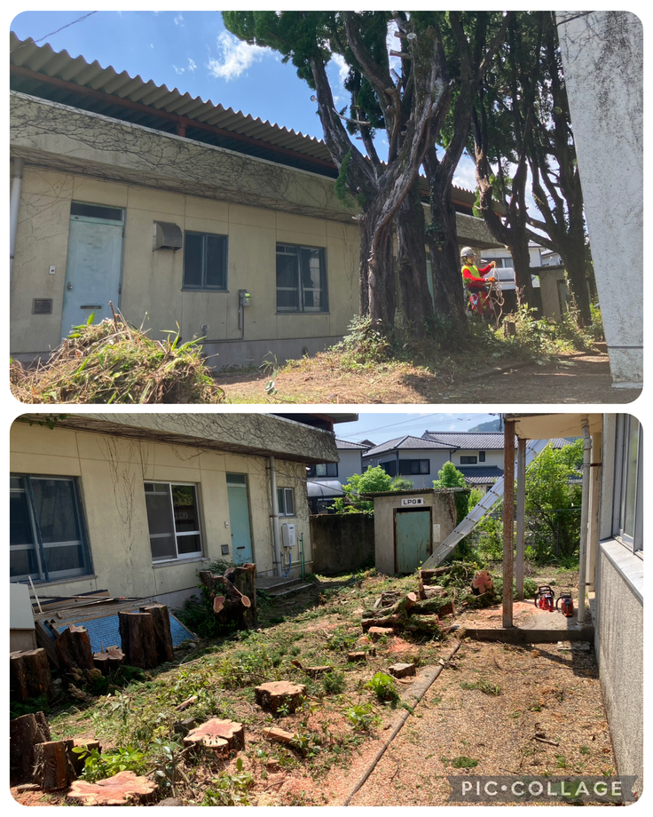 本館と平屋の間に生えていた木をすべて伐採しました。