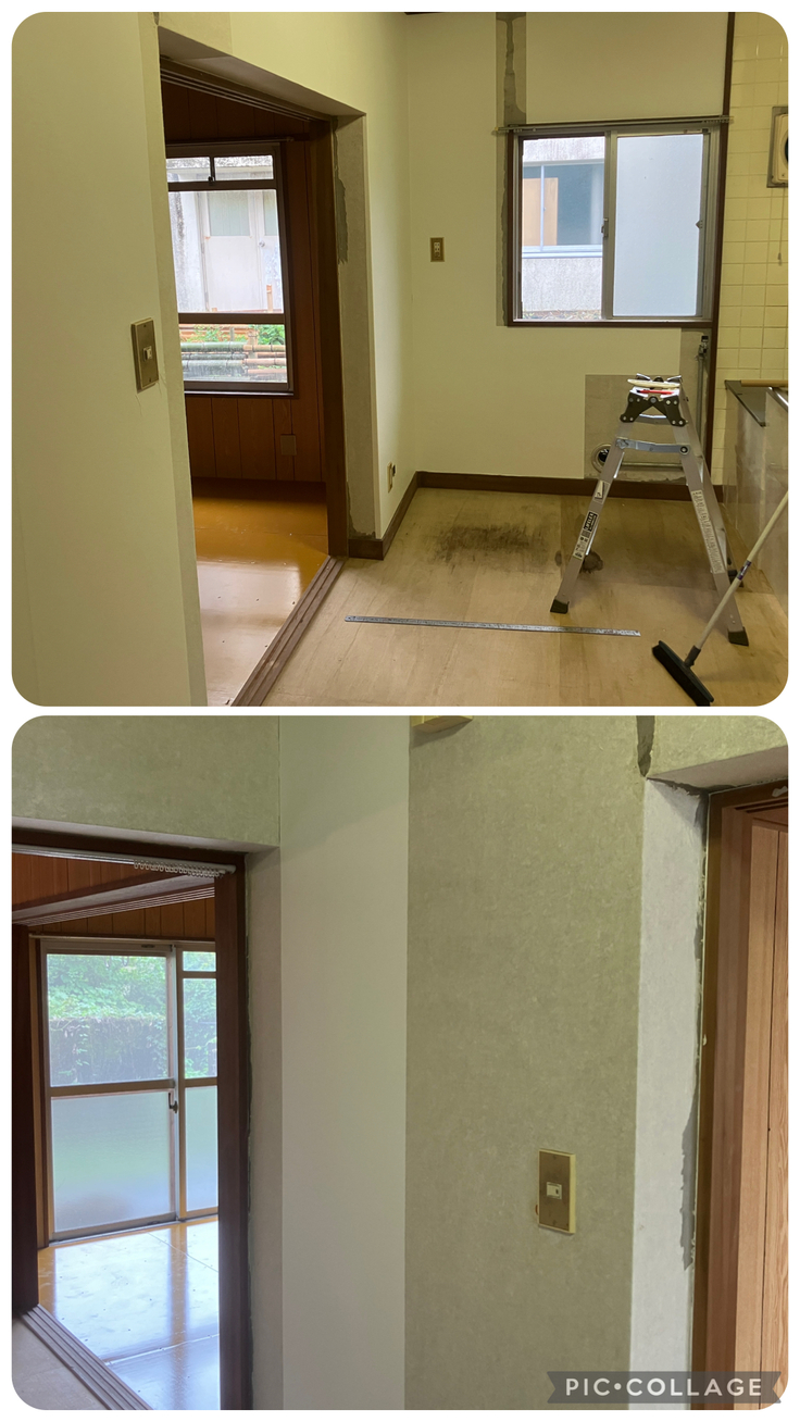 クロスの残りを貼り、照明を交換し、フロアマットを敷設すれば大体の修繕が完了となります。