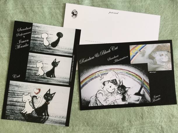 ・サンドアーティスト飯面雅子(いいめんまさこ)様の絵ハガキ3枚セットをお送りします。