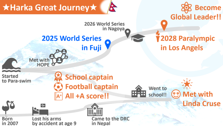 The Para Swimming World Series in Fuji, Shizuoka in April 2025 is a crucial event as it serves as a precursor to the Paralympics. Harka is diligently training every day, despite limited resources, to achieve his ultimate dream of competing in the 2028 Paralympics.
