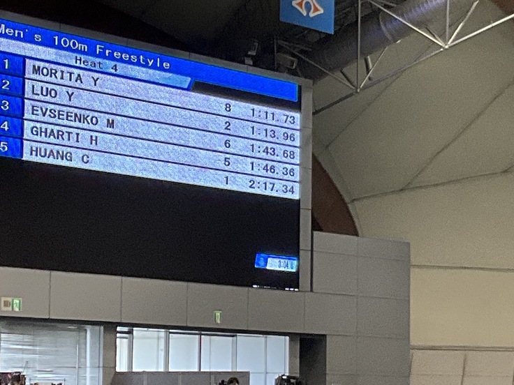 ハルカ選手は残念ながら予選4位で男子100m自由形の決勝には進めませんでした😢