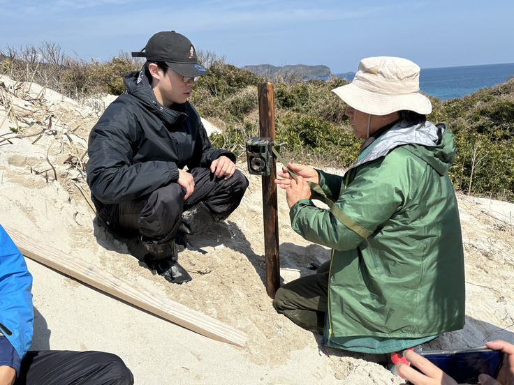 対馬にはフェリーで向かいました。九州から約135km、4時間半ほどかけて到着です。佐々木理事長から今までの痕跡情報や調査道具の説明を聞きつつ、いくつかの設置予定場所へと向かいました。