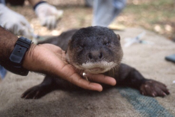 図1及び図2:2000年9月にタイとマレーシアとの共同調査によってナラシワットで捕獲されたスマトラカワウソ