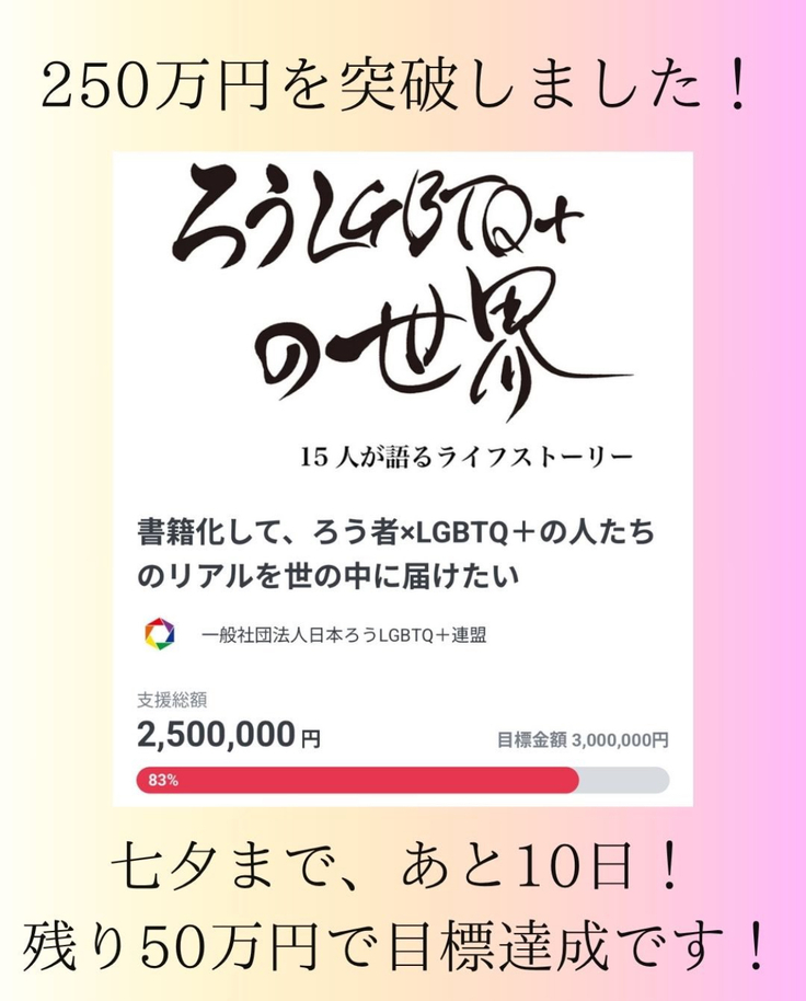 🏳️🌈 クラウドファンディング 250万円突破🏳️⚧️