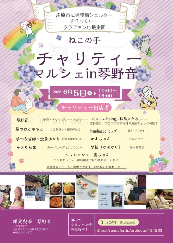この度、私たちのプロジェクトを応援してくださる有志の仲間たちが、**「クラファン応援企画 マルシェin琴野音」**を開催してくださることになりました!