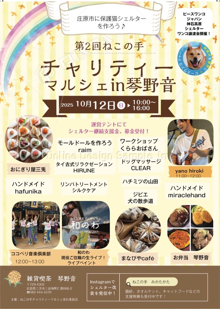 このたび、有志の皆さまが 10月12日に「第二回チャリティマルシェ」 を開催してくださることになりました。保護猫たちのために力を合わせてくださる仲間の存在は、本当に心強く、大きな励みになっています。