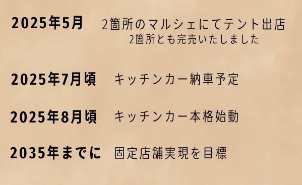 - 飲食店営業許可(自動車営業)は2025年8月頃に取得予定です