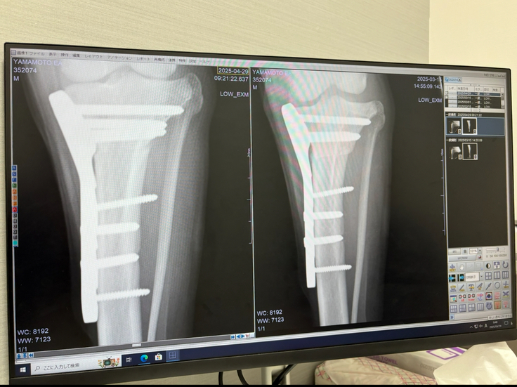エアの経過ですが,1ヶ月ぶりに病院に来ました。レントゲンと触診を受けました。2月中旬から全く散歩には出てませんが、とりあえず一日5分程度の散歩が可能となりました。