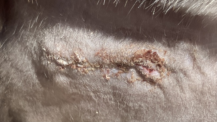 毛が生えてきたのでわかりづらいですが、今は瘡蓋もなくなり綺麗な状態です。