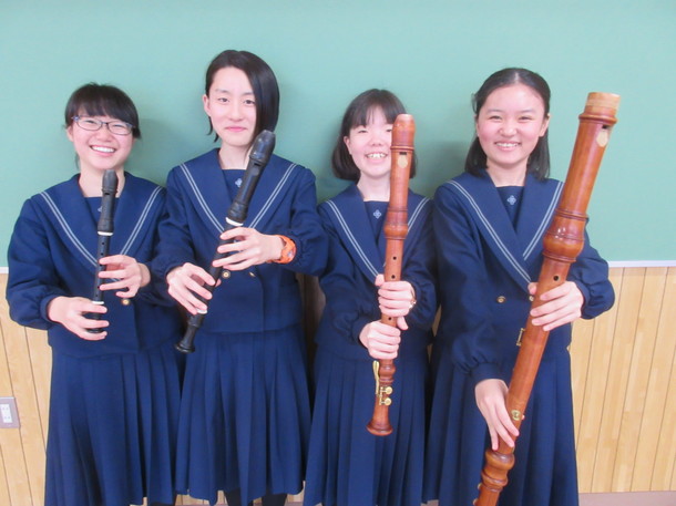 リコーダー部は今年度は10名という少人数で活動していますが、全国大会には常連で、これまで全国大会に40回以上出場し、昨年度は重奏部門で最高賞
