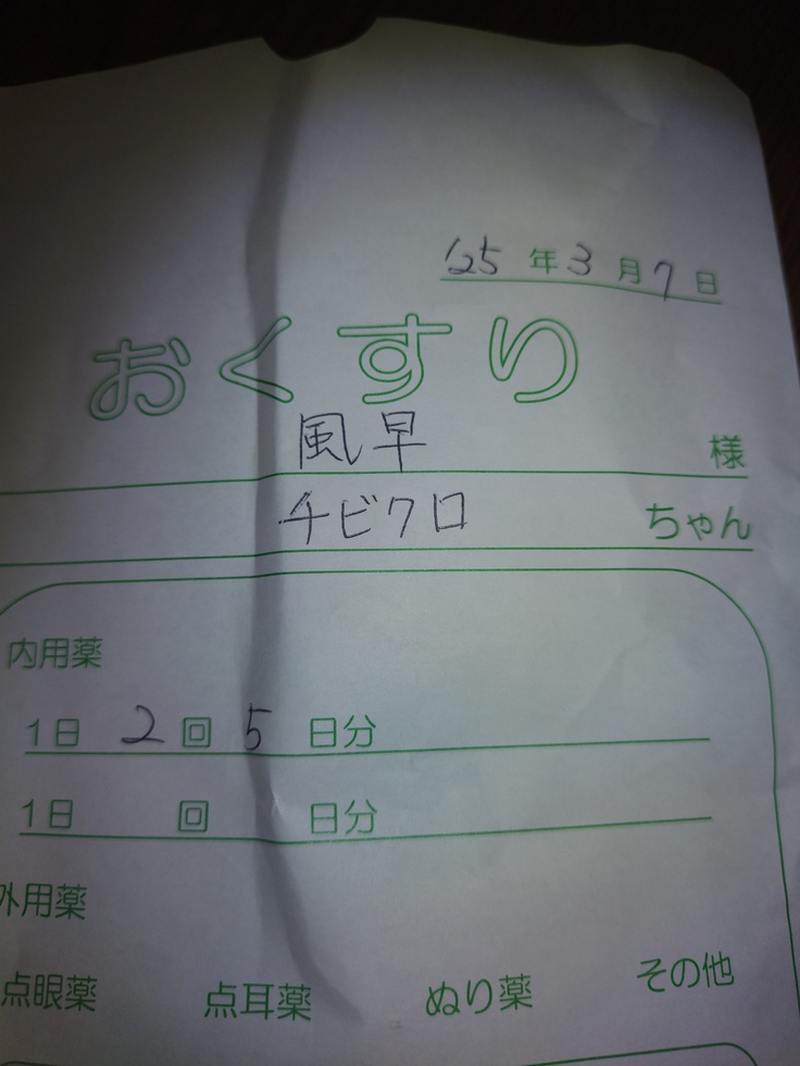 今日は、夕方より、自宅リビング組のチビクロちゃんを病院へ…