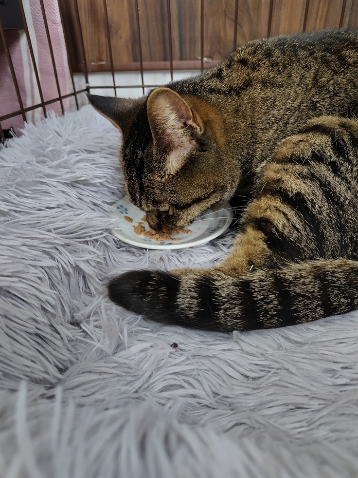 A/d高栄養食を食べ、チュールを食べ、自ら、ご飯場所まで移動して、食べていました😃