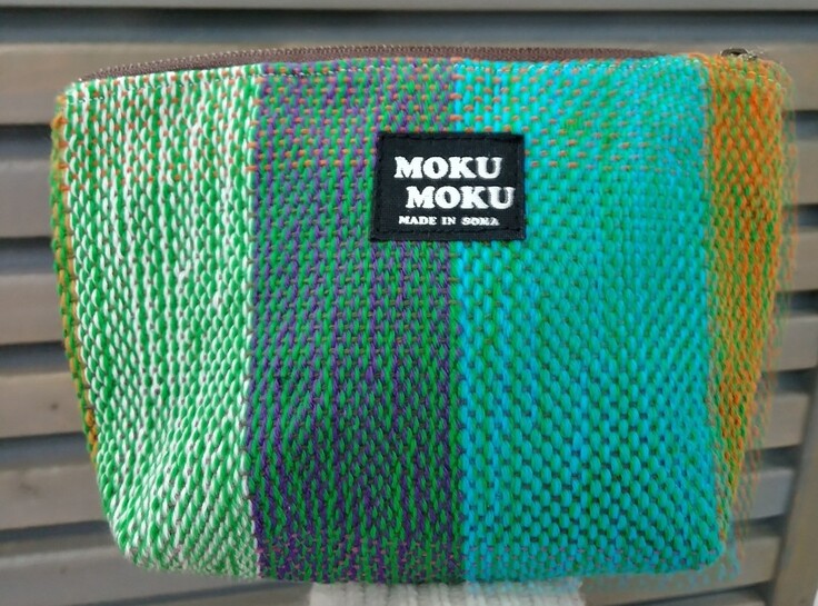 ●相馬市内にある就労継続支援B型事業所「工房もくもく」で作られたさをり織りのポーチです。