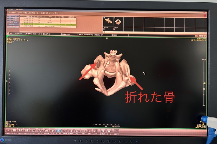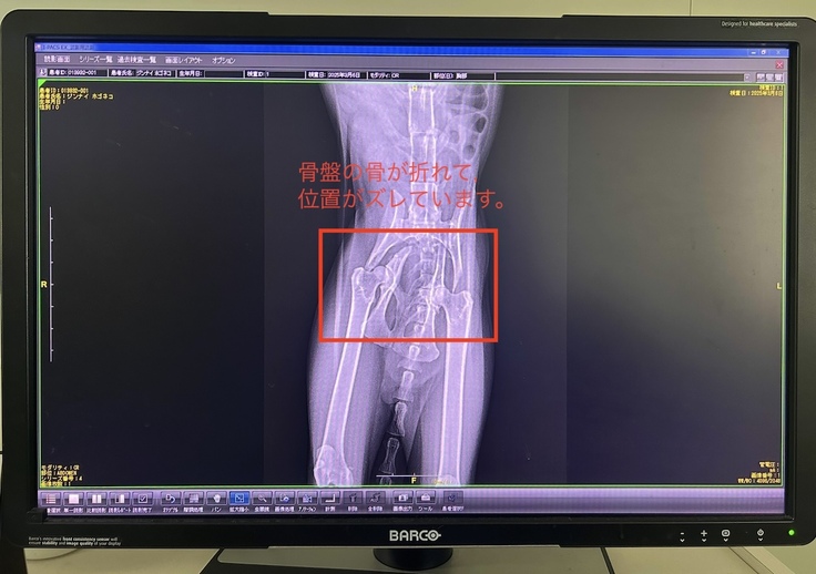 その結果,みっちゃんは両側の骨盤を骨折しており,さらに重度の内臓ダメージの可能性も指摘されました。