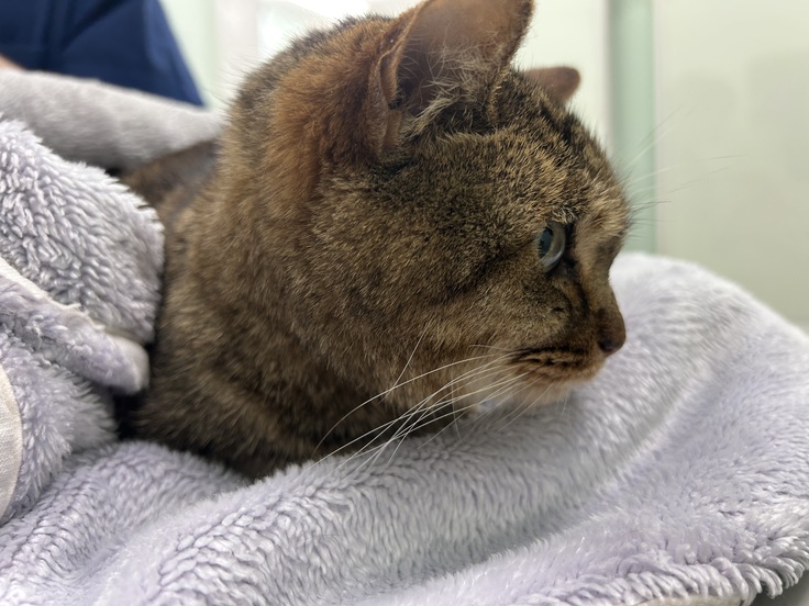 猫を抱き上げようとした瞬間,彼女は弱々しくも威嚇してきました。