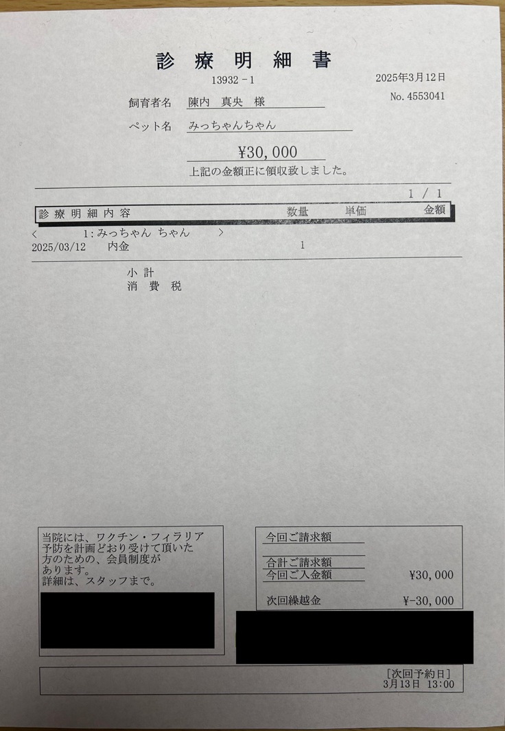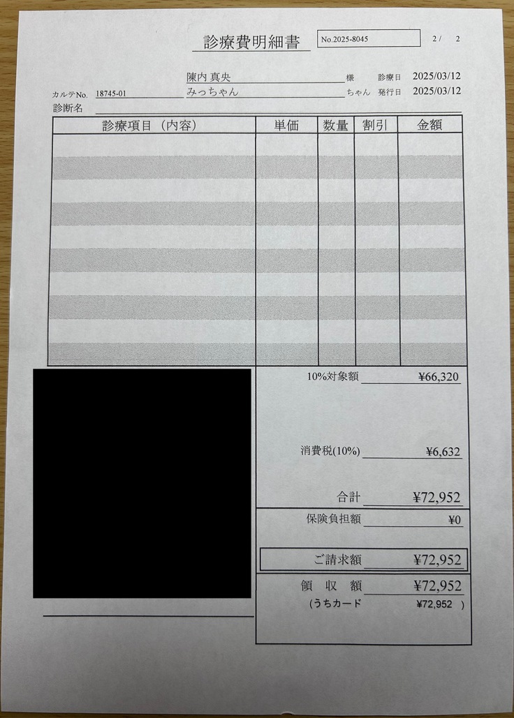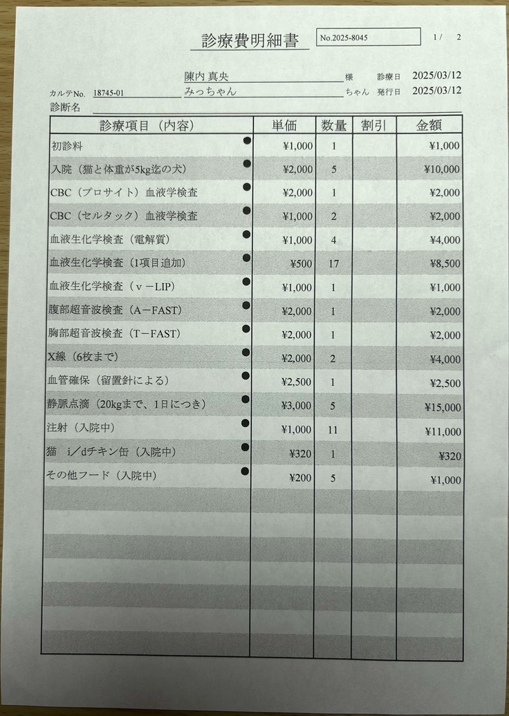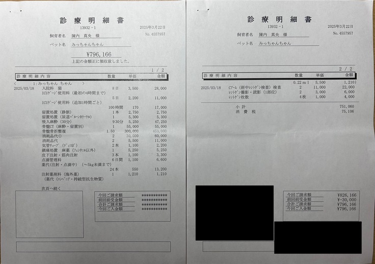 ※3月12日〜3月22日までの手術費用(計796,166円,皆様のお力を借りしたいです。)↓