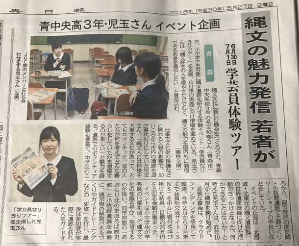 5月27日付けにて、地元の新聞「東奥日報」に活動内容を紹介していただきました!