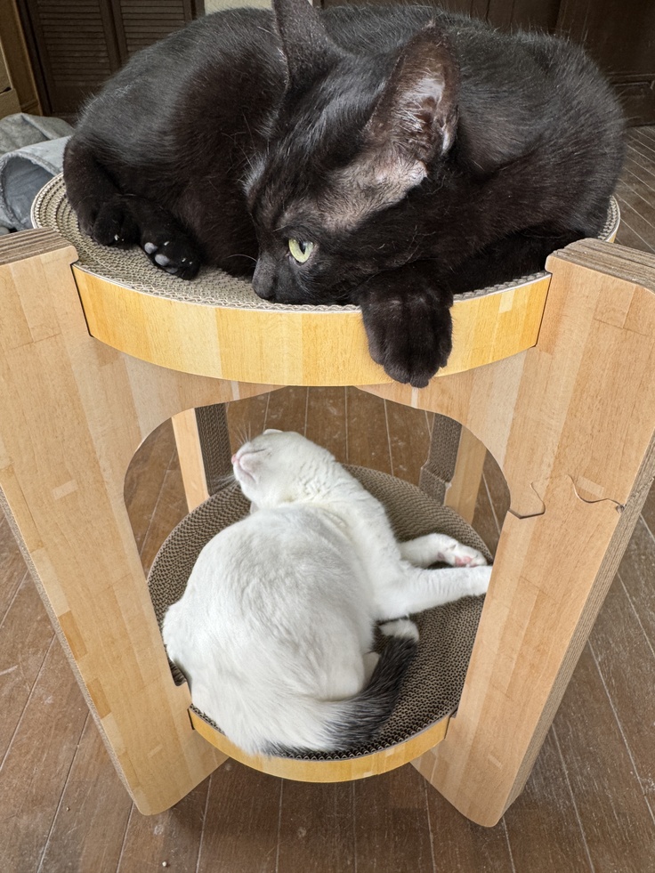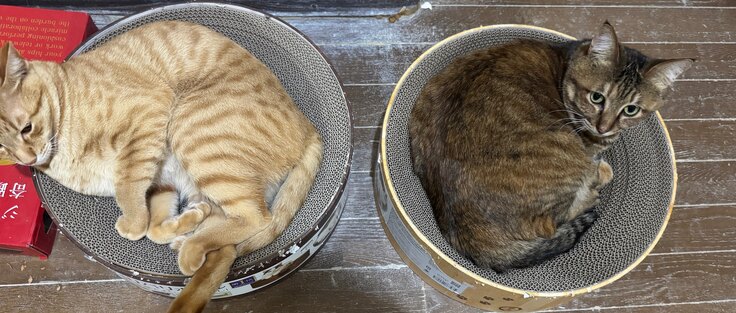 通常のバリバリボウルも全て猫が寝床にしています😅