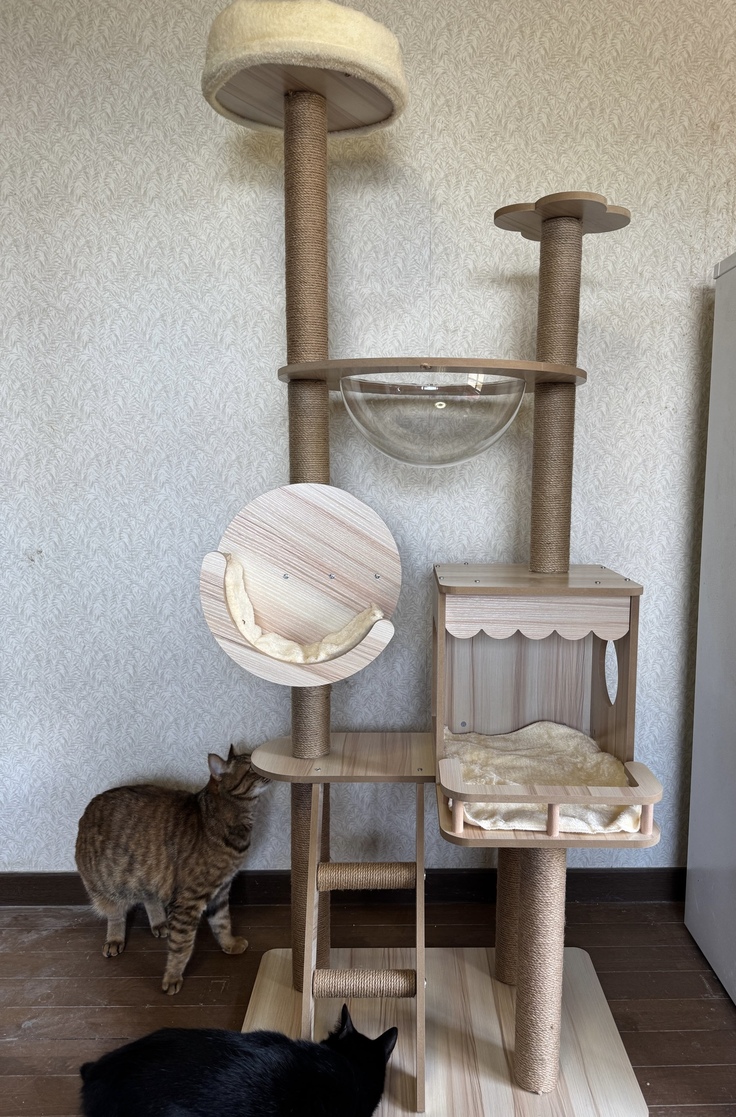 それでは、話はガラリと変わりまして、やっと1つ目のキャットタワーが完成しました。最初に送って頂いてから時間が経ってしまい申し訳ございません🙇♂️