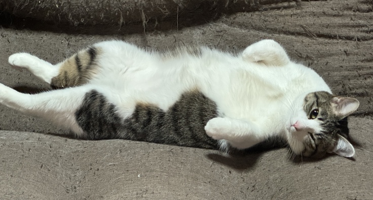 サーちゃんは、子猫の時は小柄でちっちゃくて、可愛かったのですが、避妊手術をしてから太り方がすごくて、顔が小顔なだけに太った体とのバランスがとても悪くなってしまいました💦