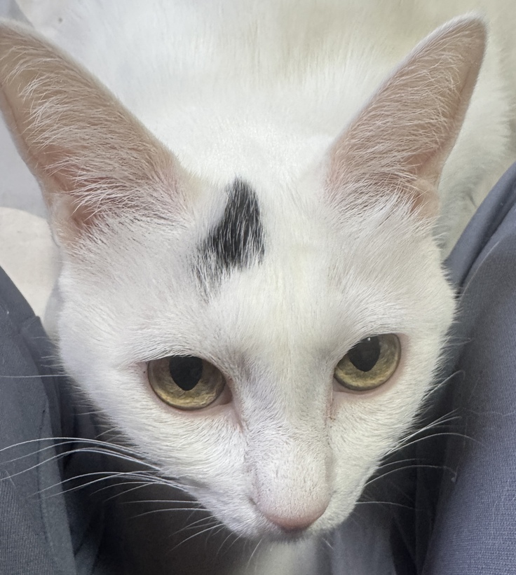 べーちゃんは、頭の黒いワンポイントの位置がシロちゃんに似ています。シロちゃんは真ん中に黒いのが1箇所だけで基本真っ白、べーちゃんは真ん中にちょろんとある以外も、黒の模様があちらこちらにあるので、体全体でみたら全く違います。