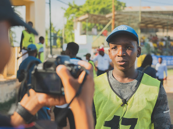 写真 スタディーツアー中に開催された「タンザニア甲子園大会」にて、球児の代表として、インタビューを受けるアルファ選手。
