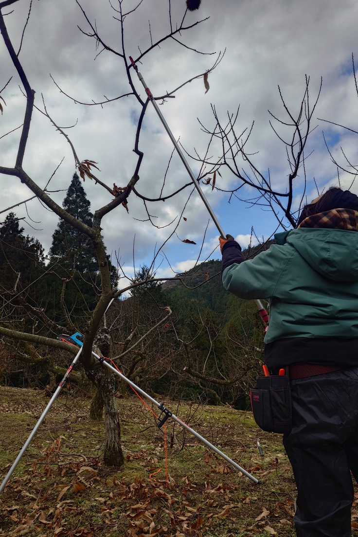 栗栽培において冬季の剪定作業が非常に大事であり、その年の栗の品質・収量の8割が決まります。