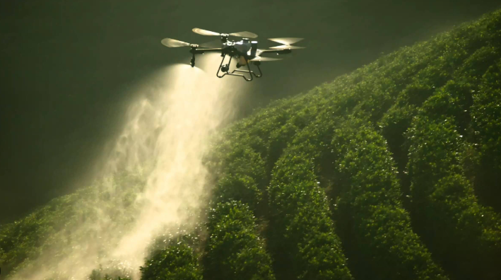 上記写真は農業用ドローンになっており農薬散布作業のみで従来型散布と比較した場合作業時間が7分の1にまで短縮できます。