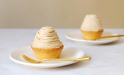 バタータルトカップにチーズアパレイユを敷き、味のアクセントにチーズの風味漂う和栗のオリジナルモンブラン