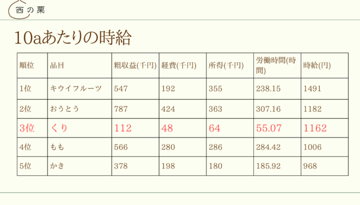 そして栗という品目は下記の表のように時給換算にすれば非常に魅力的な品目になっています。