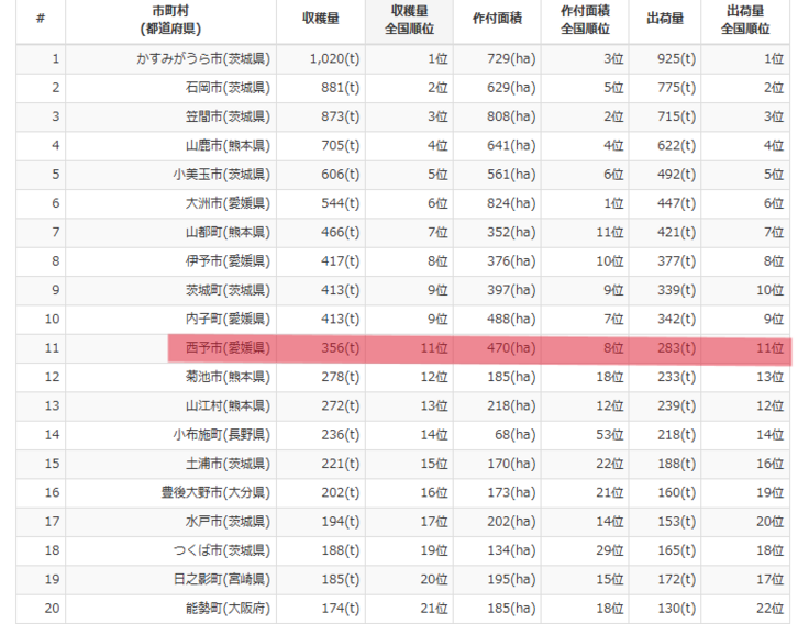 ※2006年度の栗生産量全国上位に愛媛県から4か所、西予市は第11位になっています。