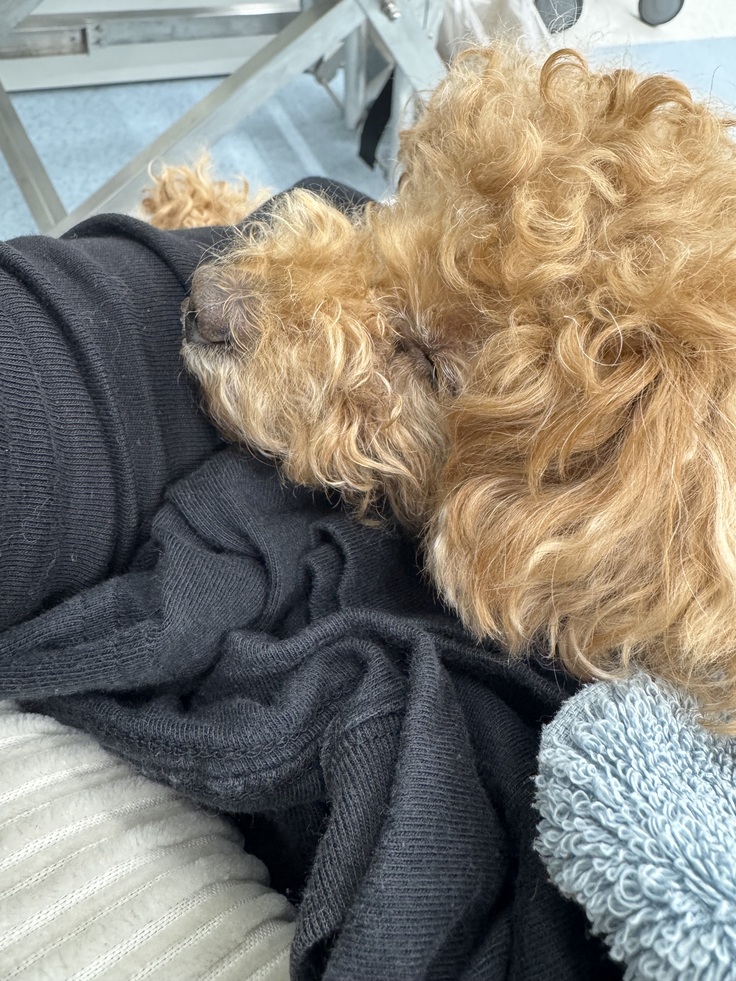 その日のレイちゃんの顔つき、呼吸数、看護師さんから昨晩とその日の朝の様子を聞いてご飯を食べたと聞くと安堵し呼吸数が抱っこしながら少しでも安定しないとまた不安になったり。