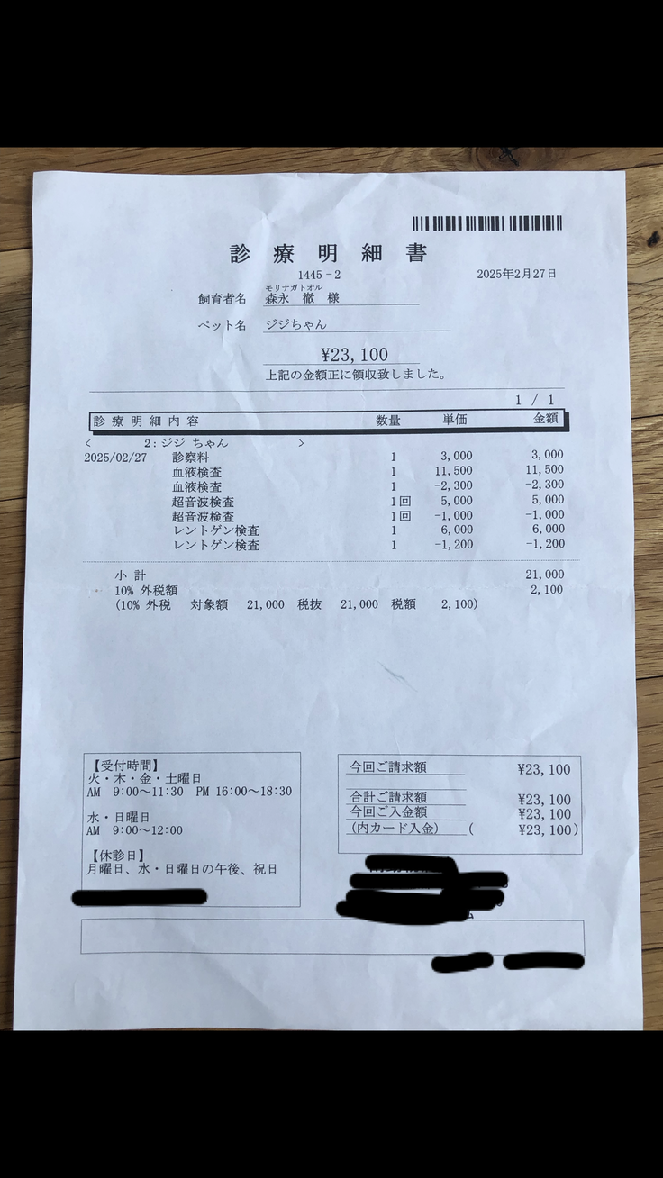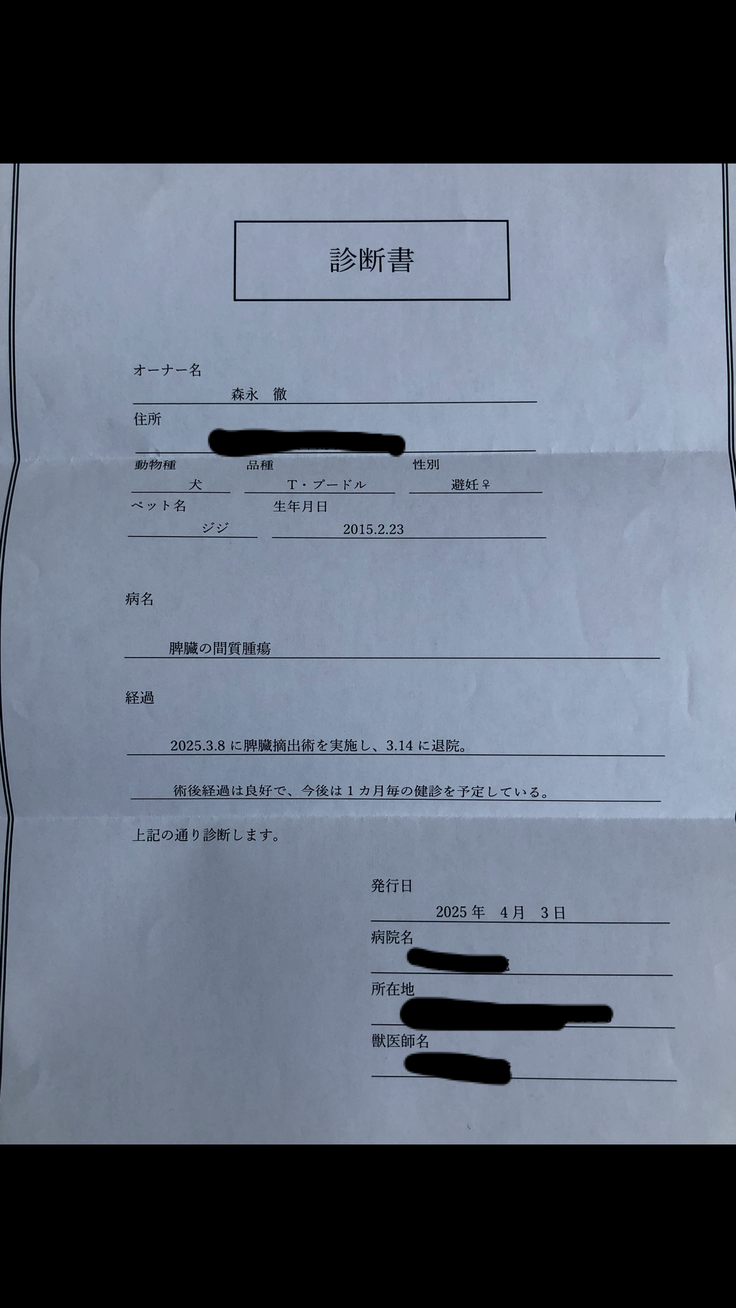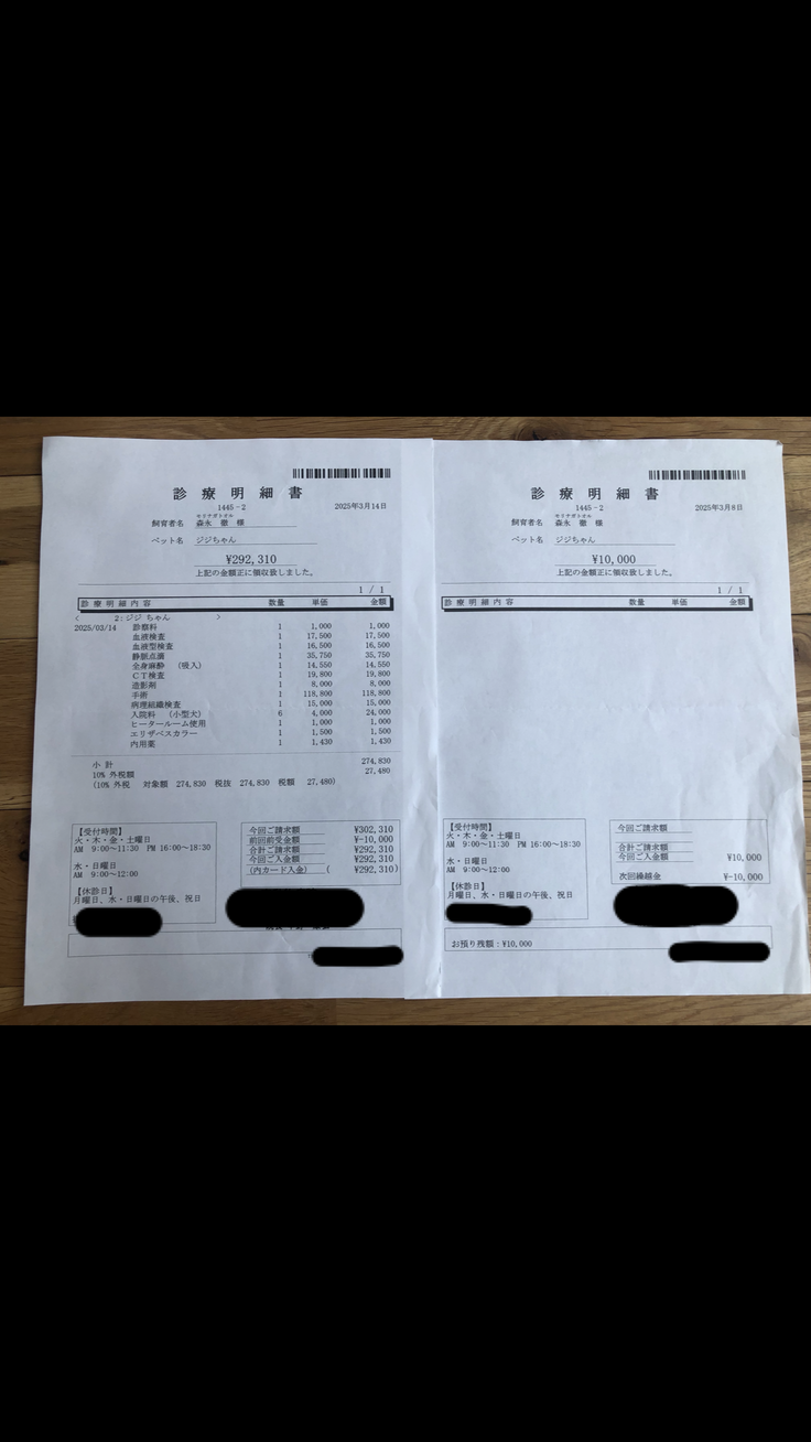 ▶︎ 4. 掲載している資料について ページ上に掲載している診断書や診療明細書などの資料は全て動物病院から掲載の許諾を得ております。