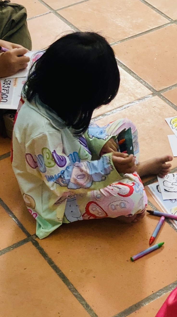 習慣的に机と椅子を用意しようとしてしまいましたが、みんなが落ち着いて描けるのは床!わかります。