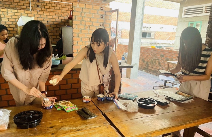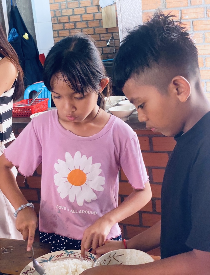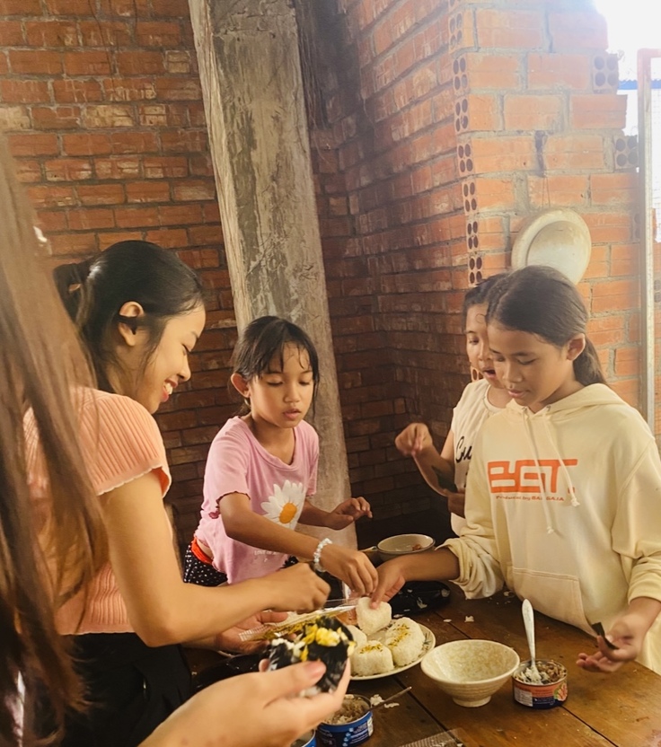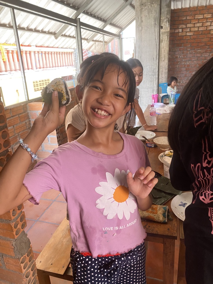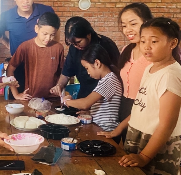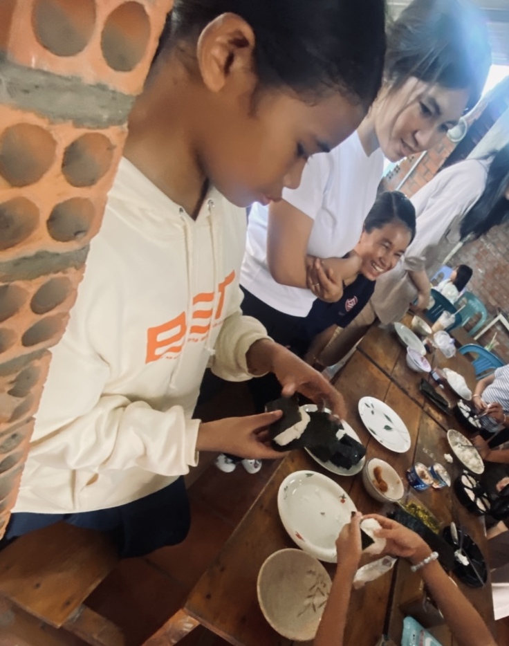 先生方やお姉さんたちが、早い時間から手伝ってくださいました。日本語、英語、クメール語が飛び交います。