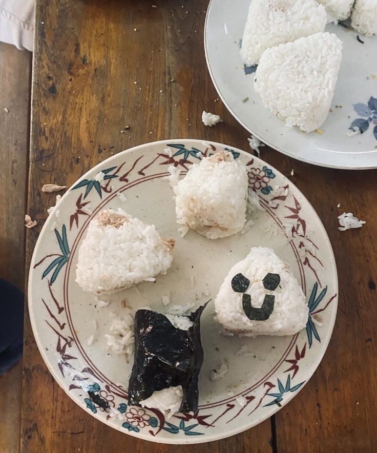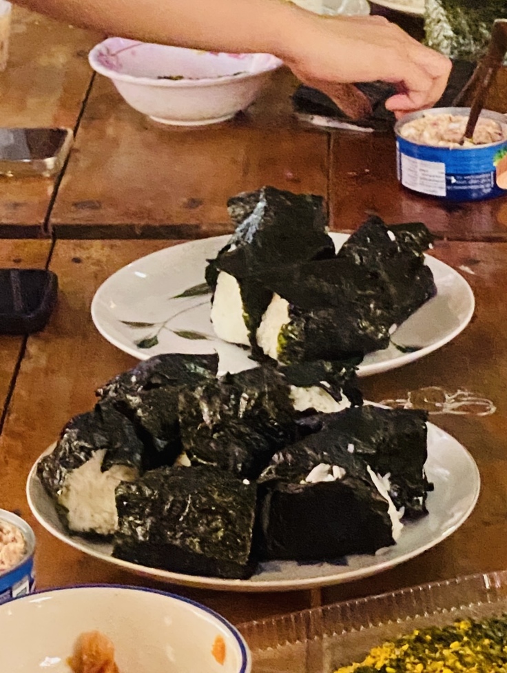 家族へのお土産おにぎりを作った優しい子も。ニコニコです。