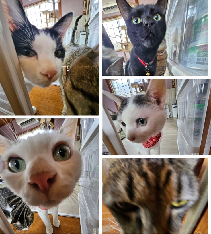 お部屋の前でカメラを向けると近寄り過ぎてみんな変顔に…。