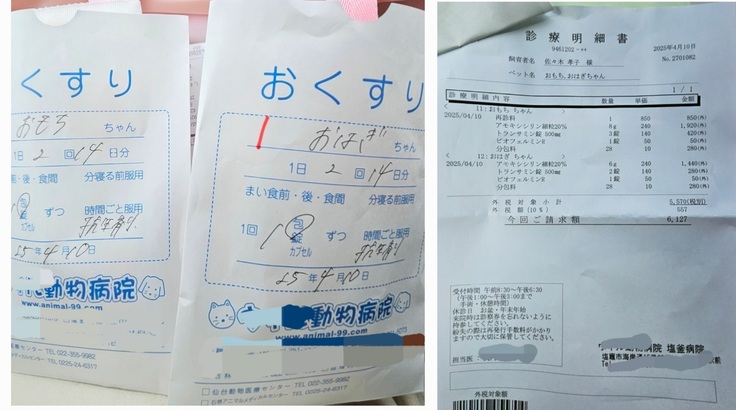 病院受診、口の中良く診察全体的に炎症が広がり初めリンパも腫れてきており、抗生剤、消炎症剤、おはぎちゃんにも少し炎症がみられる為同じお薬が出ました。(2週間分)