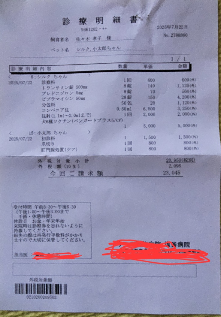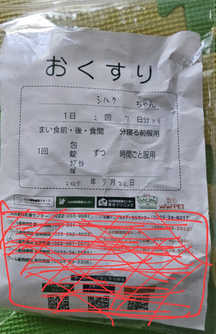 7月22日(火)予定通りシルクくんワクチン接種に行きました。