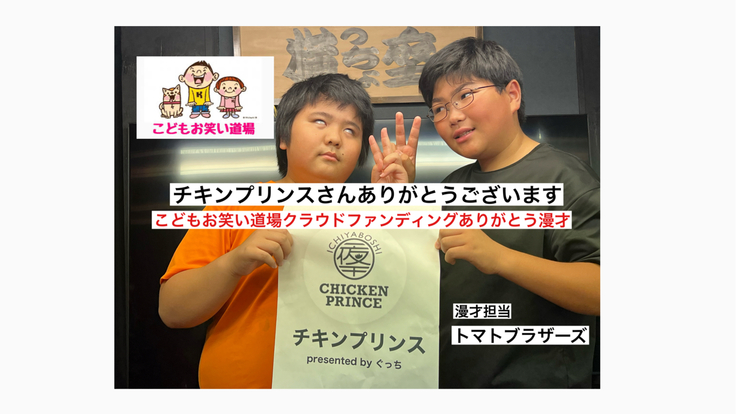 こどもお笑い道場 トマトブラザーズ チキンプリンス様 クラウドファンディングありがとう漫才