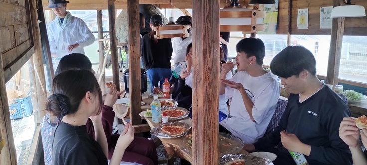 作業後はたまり家から歩いて3分「ぴざらぼ」(ここもまた宮下さんの手づくりの場)へ移動し、次回の段取りやたまり家の今後について、ゼミ生の皆さんと打ち合わせをかねて意見交換をおこないました。