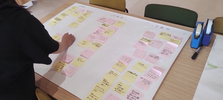 前回出た案を短期、中期、長期の視点で分けてみる。どれから取り組んでいけるのか。