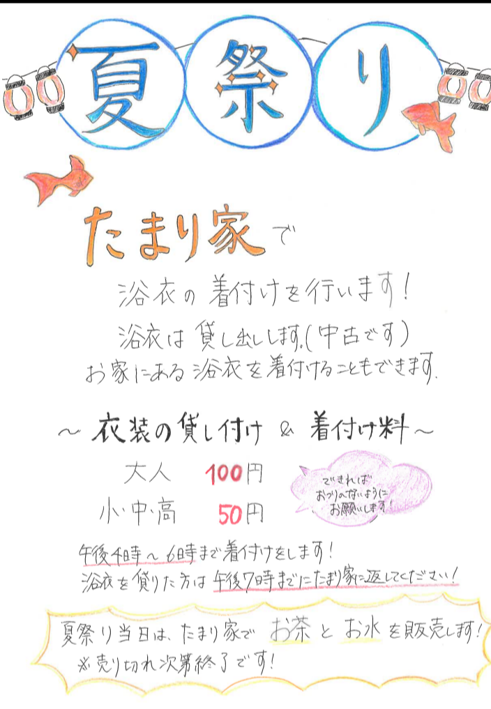 さて、お盆も近づき、夏祭りの準備が進んでいます。たまり家でも、8月11日・12日は「武石夏祭り」に合わせて、中高生による企画イベントを開催予定です。